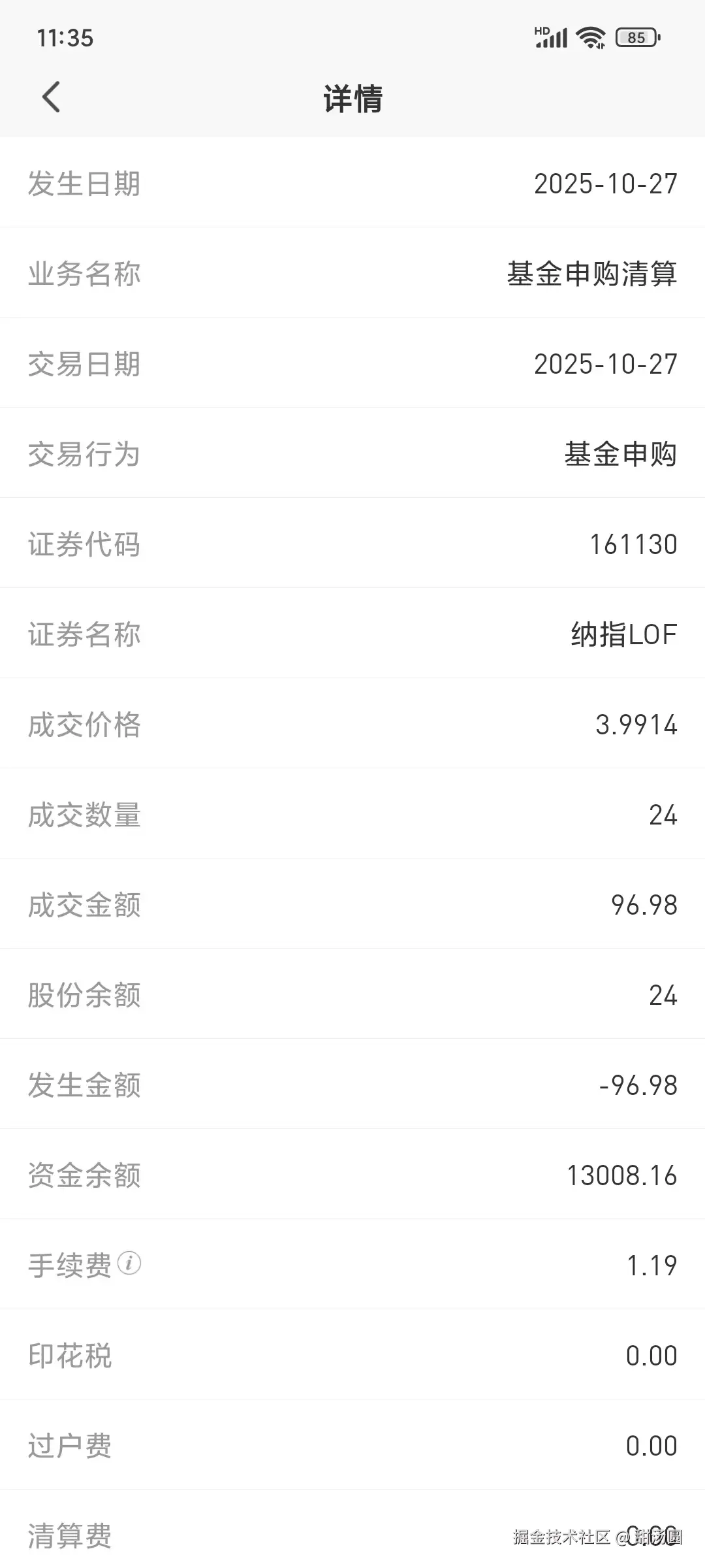 再问豆包大家是怎么操作的,原来是1拖6,买入卖出都算一笔费用,我这是一个股东账号操作一次,都单独算费用,我这平安券商,可能不支持拖拉机吧,好歹弄明白了,昨天还高兴得发沸点盈利了,今天操作的两笔50元的都亏了,每笔最少亏3元,昨天还申购了大约10笔的lof套利,还在确认中,没法取消了,哎。这学费交的不怨。