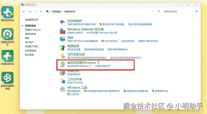 步骤2: 按顺序(【系统与安全】→【备份与还原】)进入功能入口。