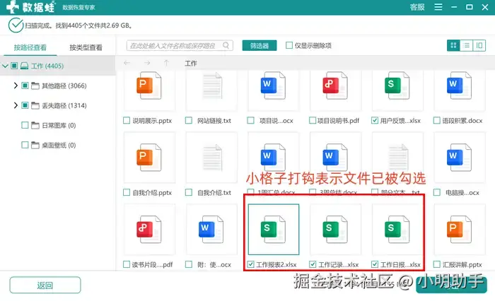 步骤2: 在软件中扫描出来的文件中,选择自己需要恢复的文件,点击后按下【导出】;最后为文件恢复后选择存放的位置,就完成回收站文件恢复的操作了。