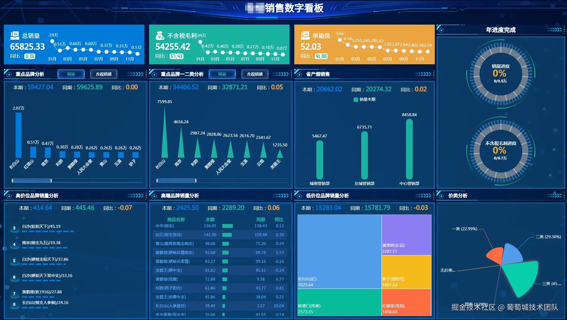 构建自助式BI分析仪表板:用于快速查看大区范围和业务员业绩量的指标情况、完成情况、销售量统计等数据;分析各业务中心当期目标、完成、完成率情况;业务员销售额目标、实际完成、完成率排行情况;各区域业务员销售过程数据分析,包括:业务员的客户数、开发客户数、报价次数、报价金额等。