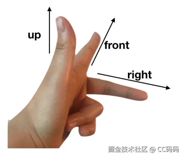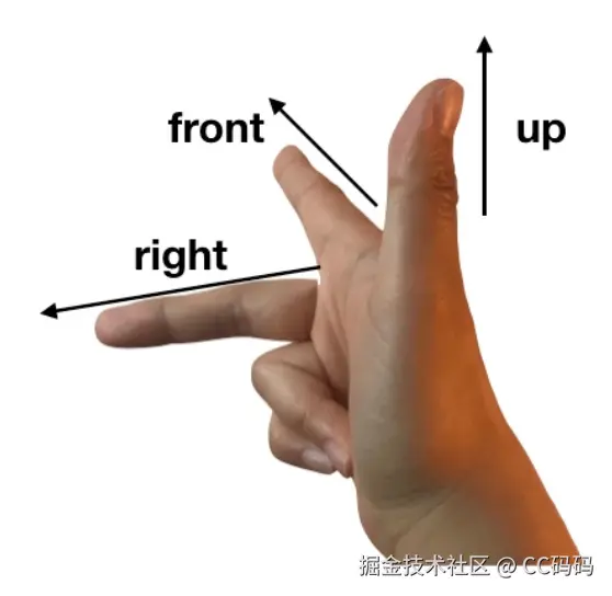 - Y轴与Z轴、X轴垂直构成右手坐标系