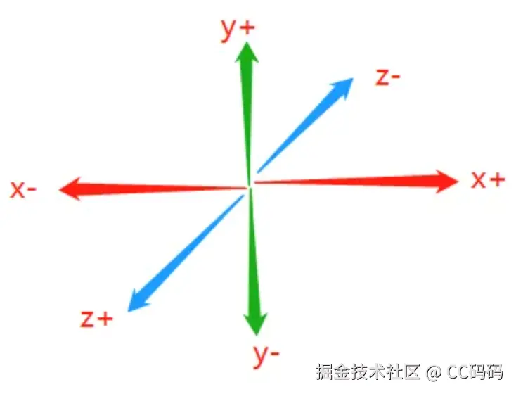 - 3D场景坐标:是三维笛卡尔坐标系,Three.js默认Y轴向上,Z轴向外。