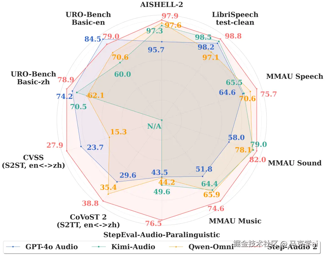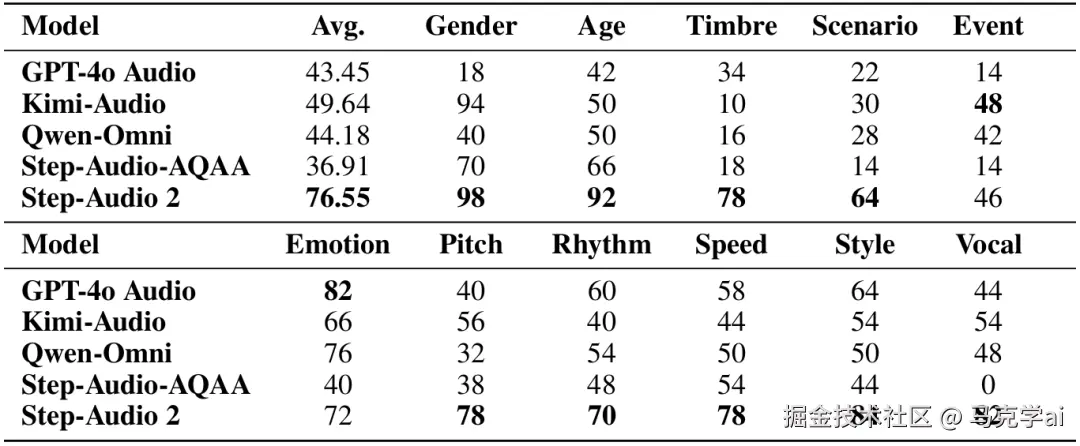 在权威基准测试中,Step-Audio 2表现突出: