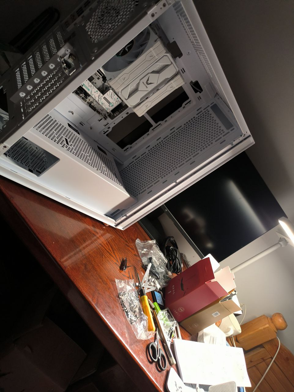 中午把所有的组件都拆了包装,录了开箱视频。还好都没用到。有一把风扇的灯条坏了,我直接叫厂家重发了。开那把风扇没有录视频,因为之前的风扇都是好的…… 结果上到主板上才发现点不亮,也就只有一把,其他五把都是好的,就觉得蛮怪的。