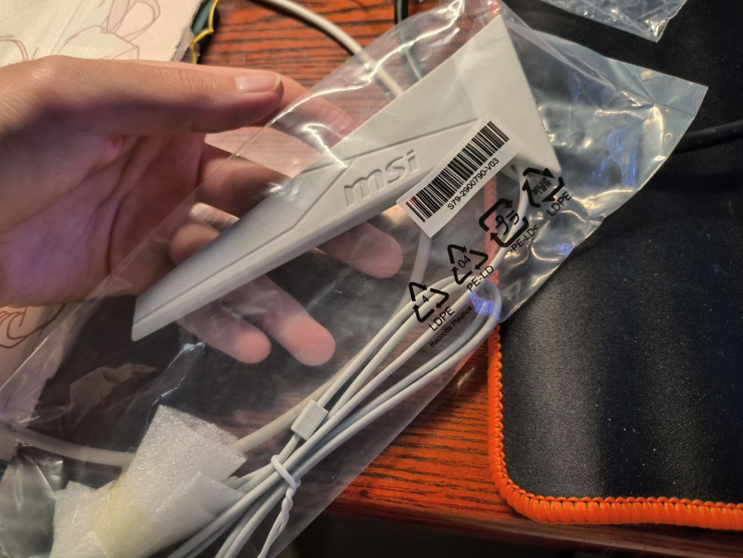 微星!你就不能搞个特制的说明书吗?!还有你送的那个什么玩意儿,看都看不明白,问客服才知道是 Wifi 天线。搞个配件清单要掉块肉吗 TvT。