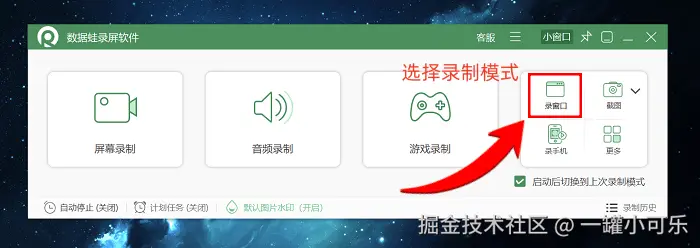 步骤1:电脑网页怎么录屏?首先打开数据 蛙录屏软件客户端,等待程序完成初始化加载。进入主界面后,根据实际录制需求选择对应模式。如果仅需录制网页界面,直接点击 “窗口录制” 选项即可进入功能操作界面。