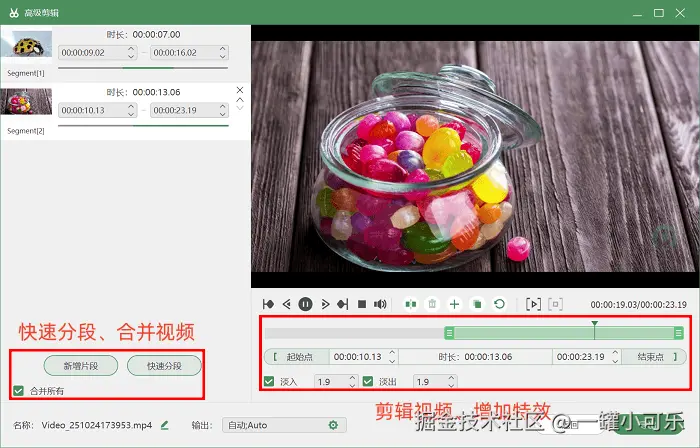 步骤3:视频录制完成并停止后,若对视频最终效果不满意(如开头有多余的准备操作、结尾有不必要的停顿),可以点击进入 “高级剪辑” 页面。在剪辑界面中,除了可以勾选 “音频淡入”“视频淡出” 等过渡特效,还能通过拖动时间轴滑块,选择 “删除” 选项去除多余内容,完成视频优化。