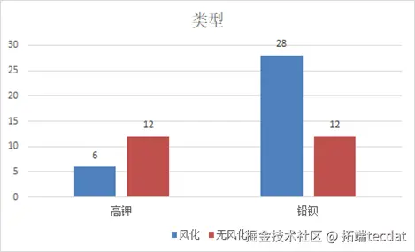 下图为类型与风化的关联柱形图,清晰呈现高钾玻璃未风化占比高、铅钡玻璃风化占比高的特征。