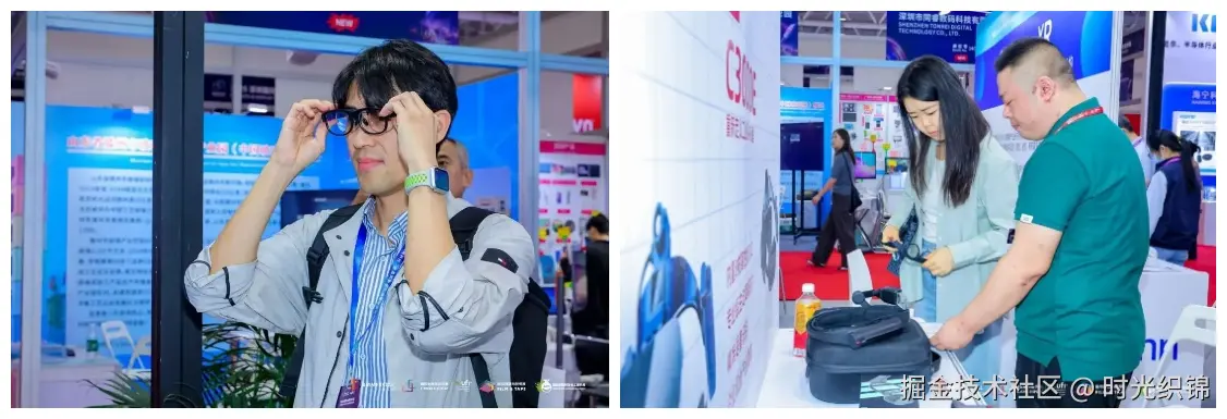 AI+AR智能眼镜体验区,聚焦下一代人机交互,融合了AI与微显示技术,李未可、谷东智能、维深信息、大朋VR、易天科技、形意智能等展示轻量化全彩光波导、Micro OLED微显示、双目SLAM与手/眼追踪、多模态语音-视觉交互、AI字幕与同传等技术产品,加速AI+AR眼镜从研发走向规模化应用。