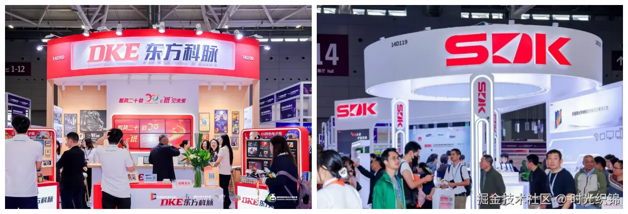 电子纸展区,打造了近千平的电子纸生态展区,集中展示大尺寸商显、彩色电子纸、数字价签、智慧学习机、电子纸模组、广告看板、AI交互、手机背壳、数码相框、教育软件、系统解决方案、电子纸配件等创新成果;