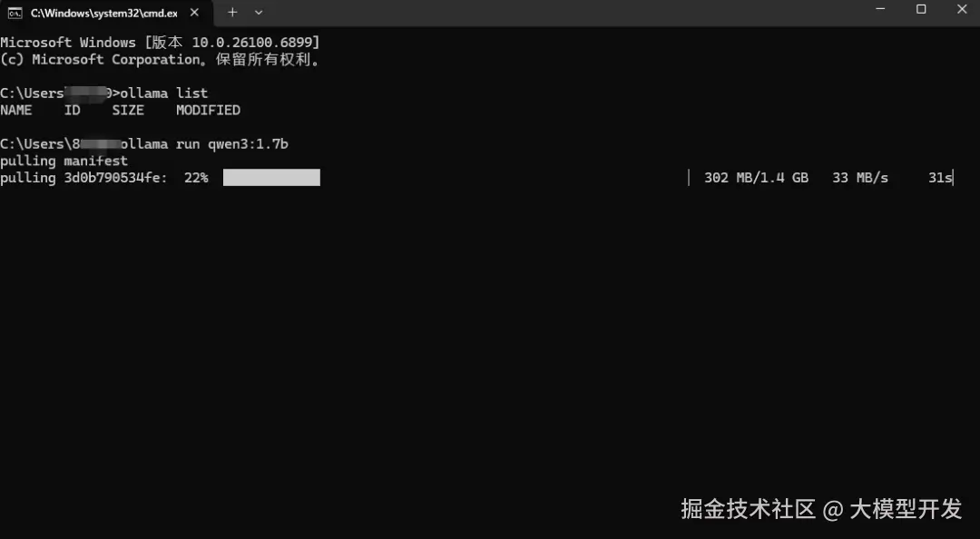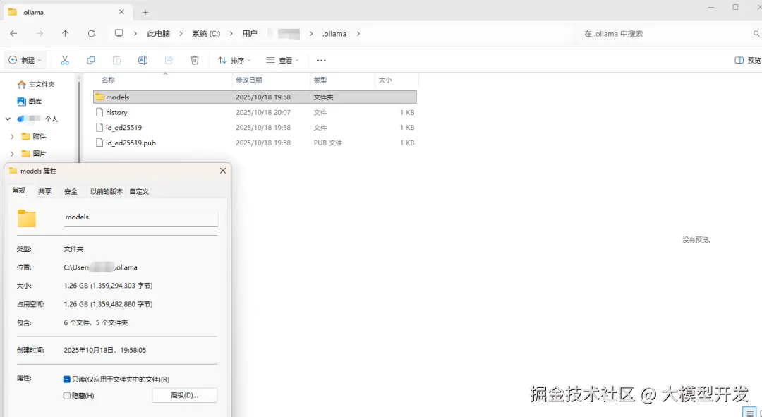 此时模型保存路径是在 C:\Users\你的用户名.ollama