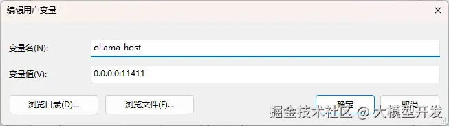 PS 在环境变量中配置ollama_host : 0.0.0.0,可修改访问端口