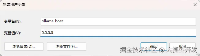 在环境变量中配置ollama_host : 0.0.0.0