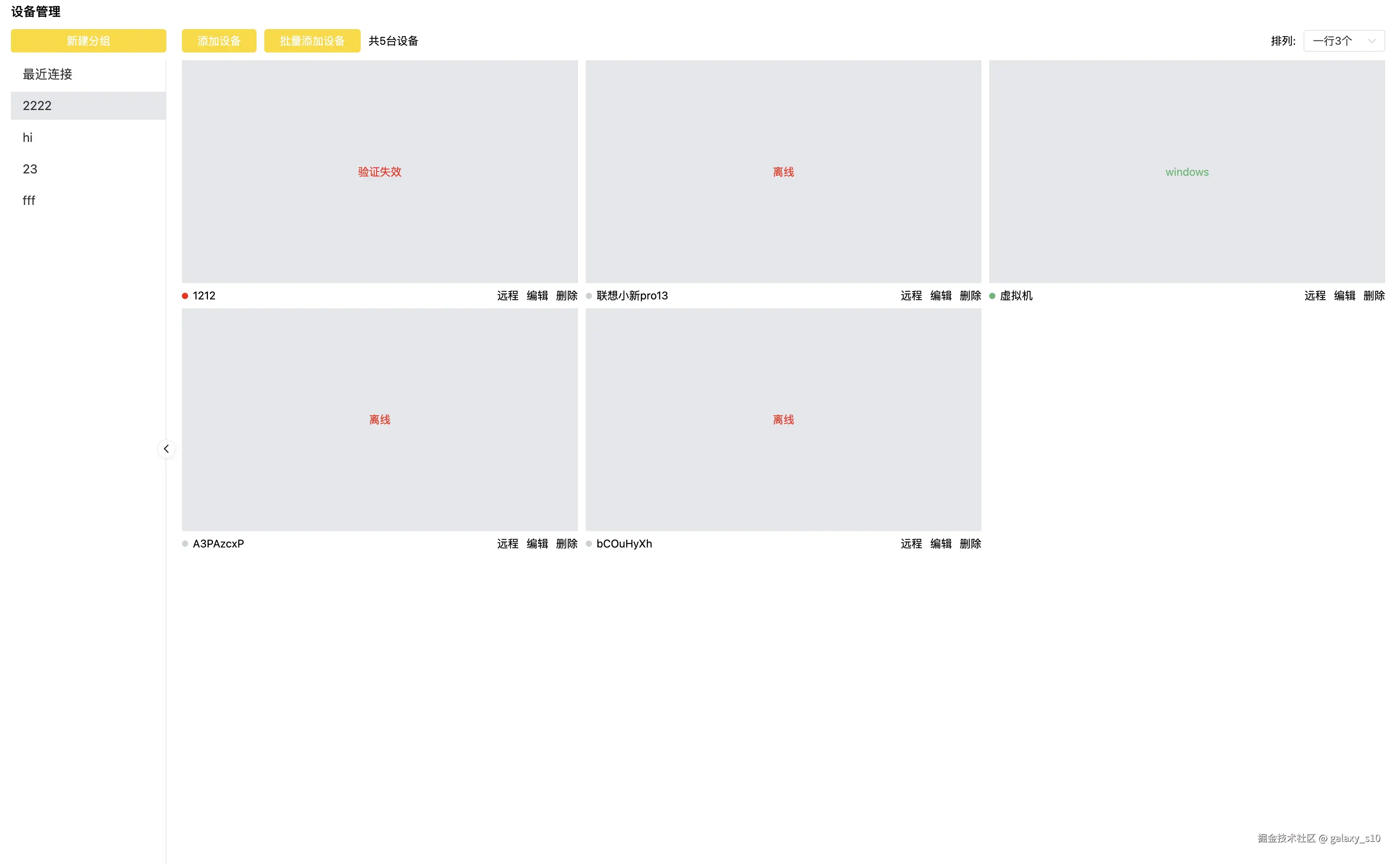 管理当前所有设备、分组、远程