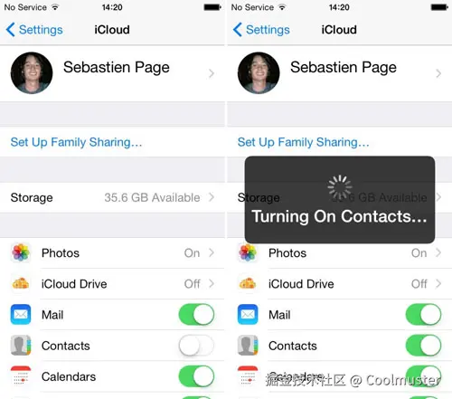 步骤 1. 在您的 iPhone 上,前往“设置”>“iCloud”>打开“通讯录”选项。