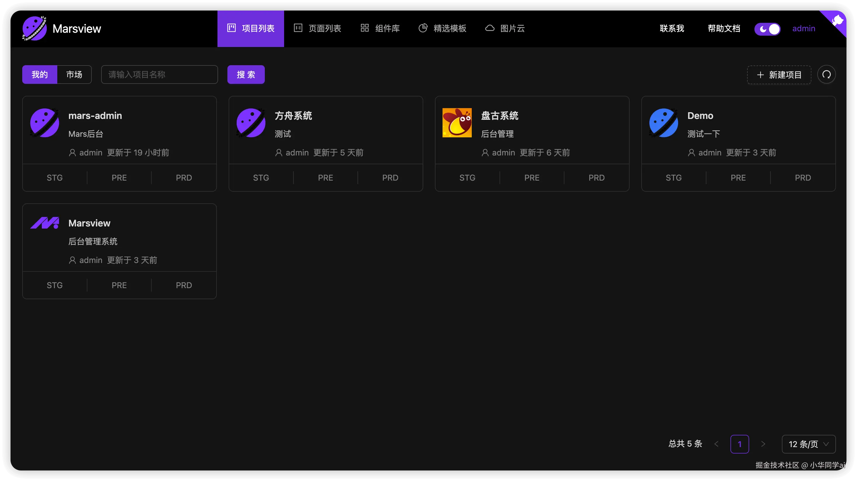 “Marsview 是一款中后台方向的低代码可视化搭建平台,开发者可以在平台上创建项目、页面和组件,支持事件交互、接口调用、数据联动和逻辑编排等”
