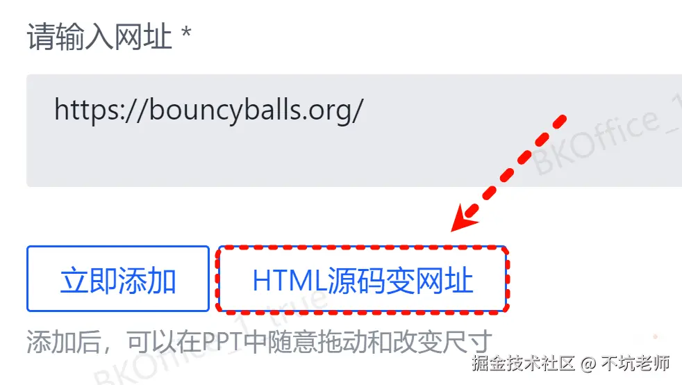 再把网址填进不坑盒子的网址框,你的HTML代码就能在演示文稿中放映了。