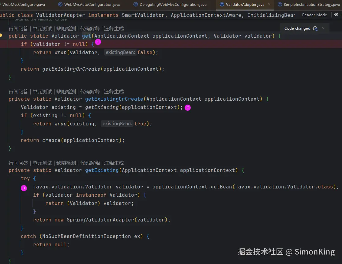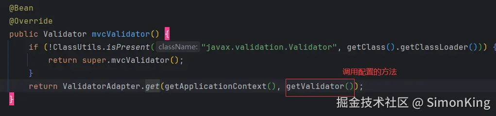 值得注意的是getValidator返回的org.springframework.validation.Validator,而ValidatorFactory生成的是javax.validation.Validator。javax.validation.Validator转org.springframework.validation.Validator时,需要借助适配器SpringValidatorAdapter类。