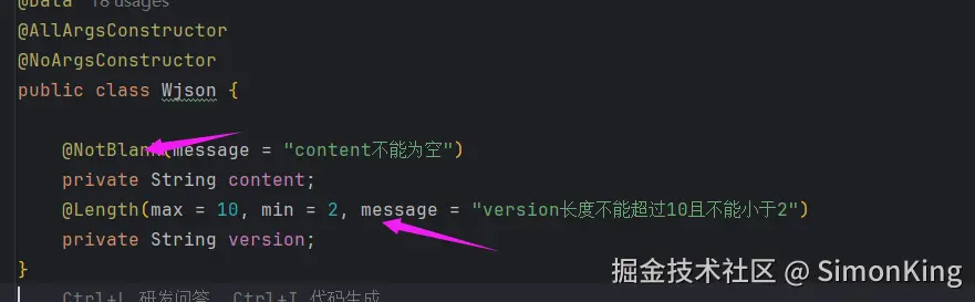 如果想要使用注解校验参数,如: