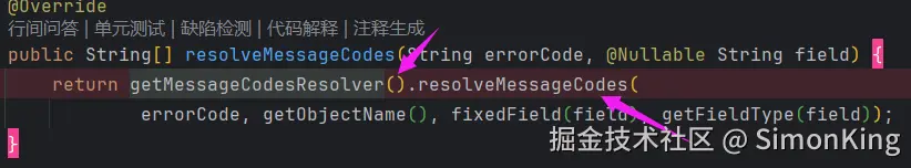 getMessageCodesResolver方法使Validator内部的一个方法。当调用errors.rejectValue时会被调用。