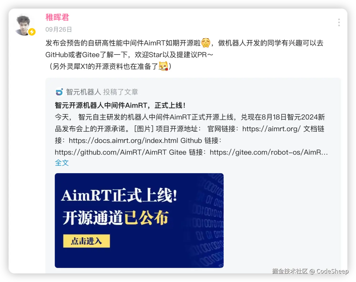 智元自研高性能中间件 AimRT 正式宣布开源。