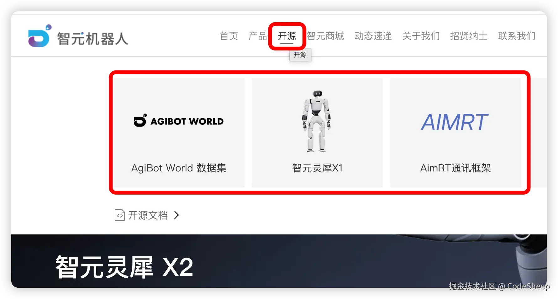 包括到现在,智元机器人官网上还专门设置了一个「开源」菜单,来集中展示智元创业以来所做的开源工作。