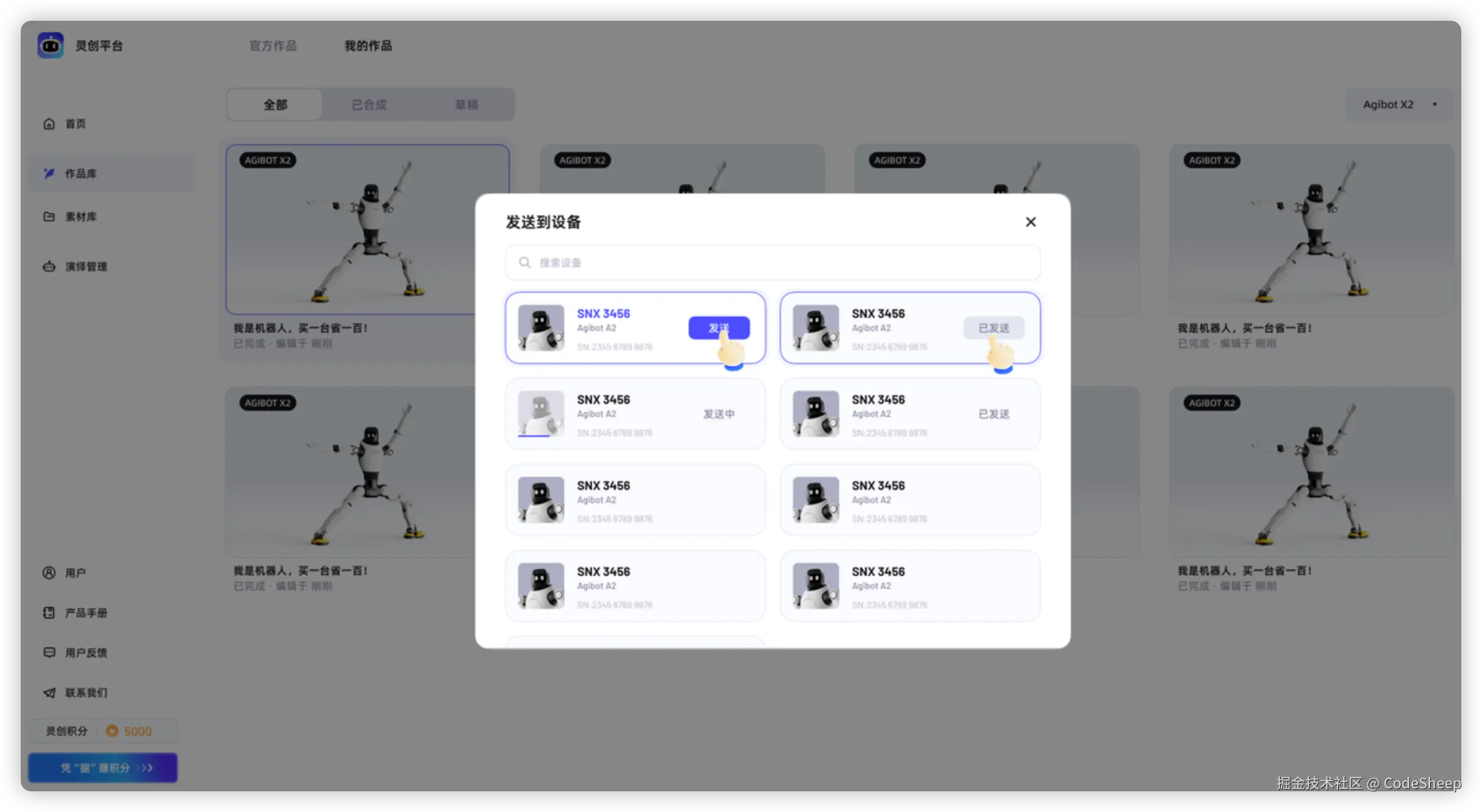 「灵创」平台的“设备联动与群控管理”功能,可以实现多设备、多样化动作任务一键下发,分角色以不同动作、不同语音、不同表情协同演绎。