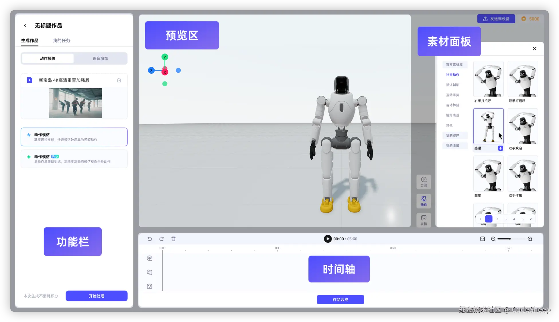 该平台支持动作混剪、组合与故事线编排,以此来帮助用户完成长程表演中的叙事化动作设计。