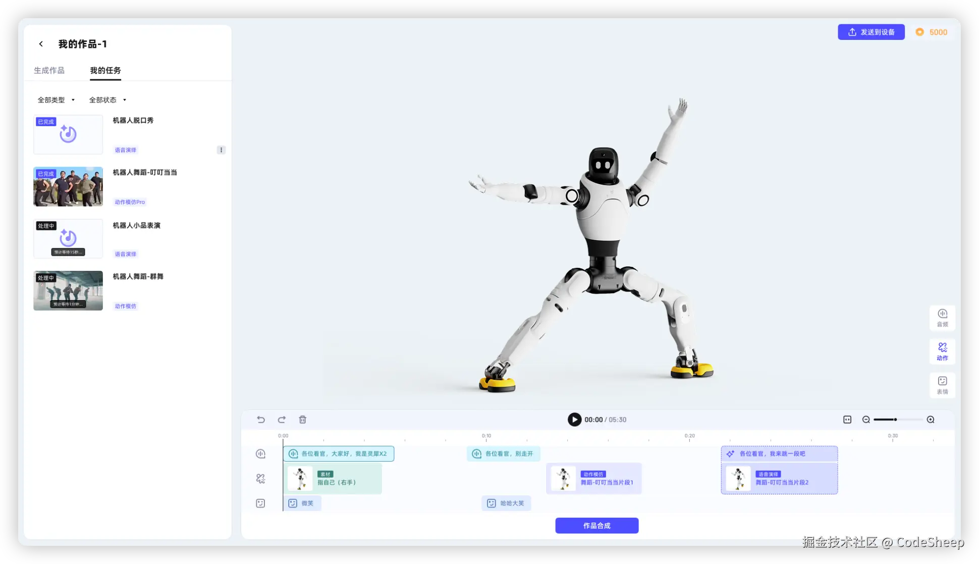 如今,用户可以像剪视频一样,通过自由编排、调整细节来编排机器人表演。