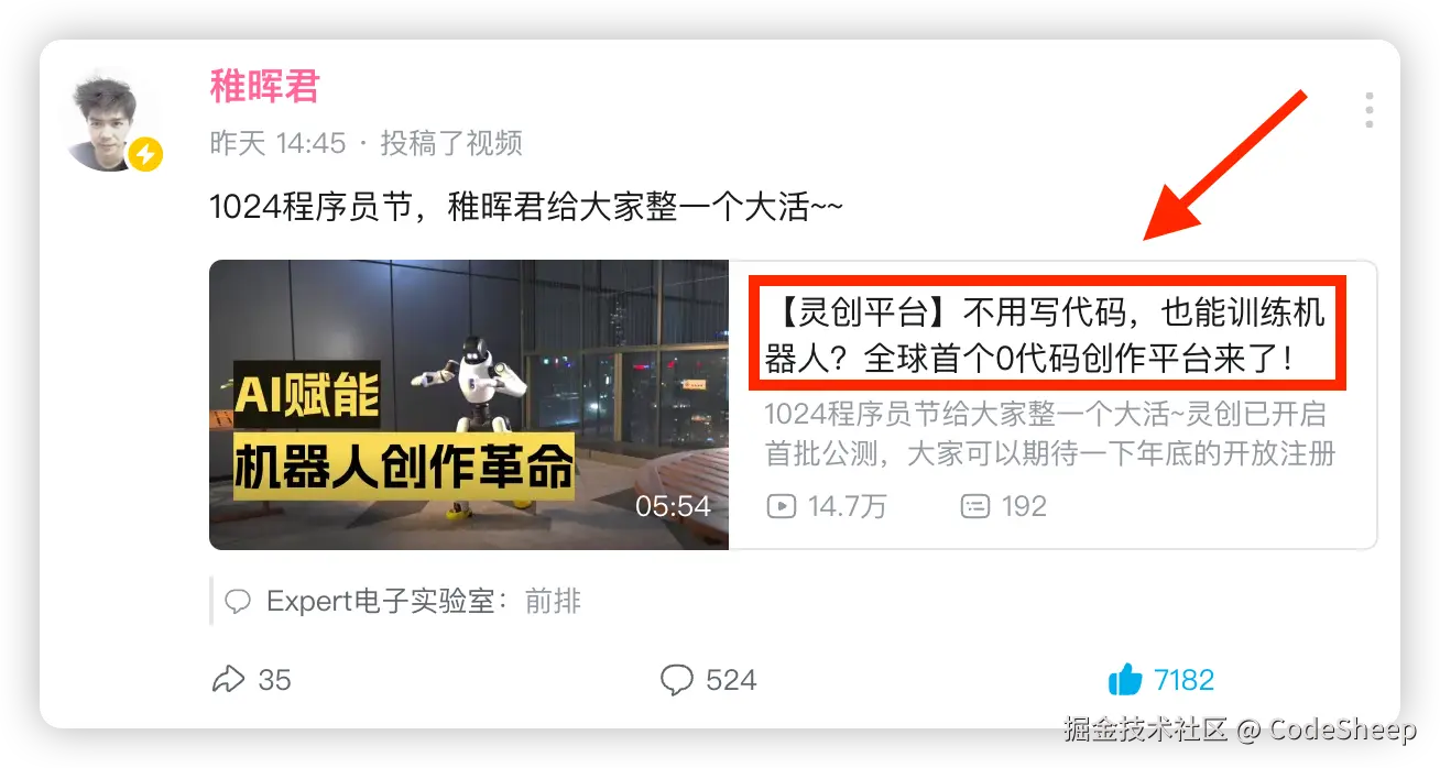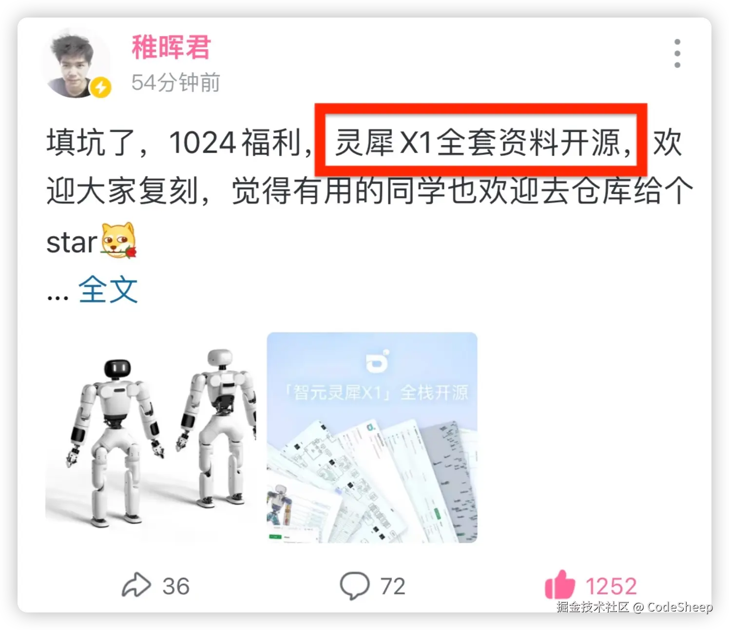这不,就在刚刚过去的 1024 程序员节,稚晖君动态迎来一波大更新,并且一出手又是一个王炸,相信不少同学也刷到了,那就是官宣: