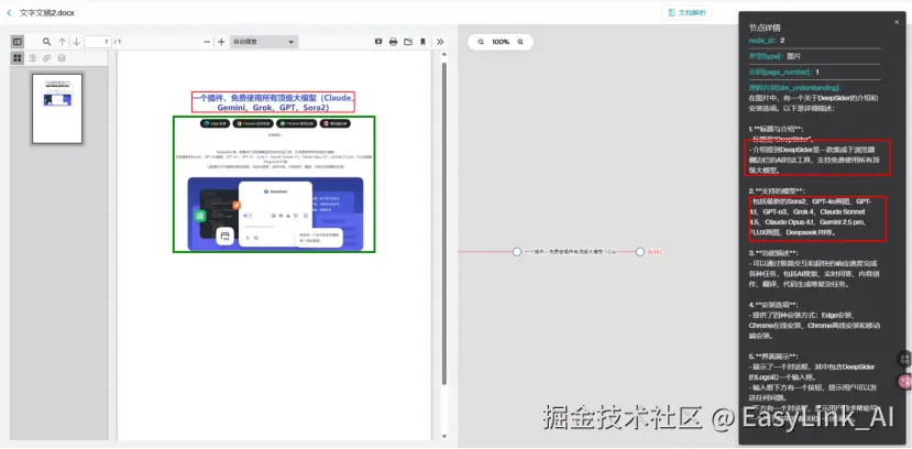 结合 RAG 技术,EasyLink 构建了“解析—验证—溯源”三重校验体系,确保每一处解析内容具备可追溯来源,大幅降低模型幻觉概率,为企业提供可信的数据基础。