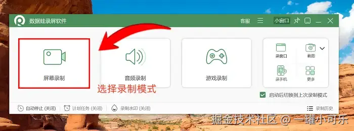 步骤1:打开数据 蛙录屏软件后,主界面会清晰展示各类录制模式,用户可依据自身需求挑选适配功能。本文结合常见使用场景,着重演示 “屏幕录制” 模式的详细操作步骤。