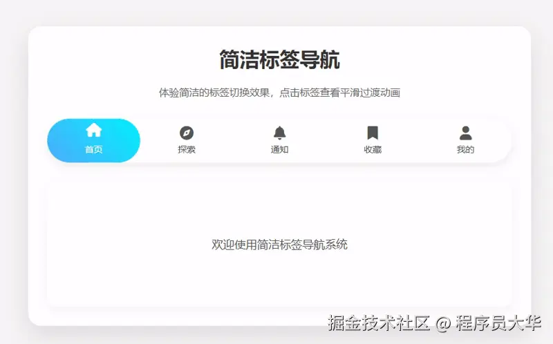 大家好,我是大华!今天给大家分享一个实用的Vue组件:弹性标签导航,代码非常简洁,主要效果由CSS实现。 这个组件不仅美观可以,而且用起来也很流畅,弹性的效果就像橡皮筋一样。