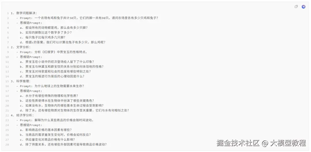以下是一些思维链的 prompt 例子: