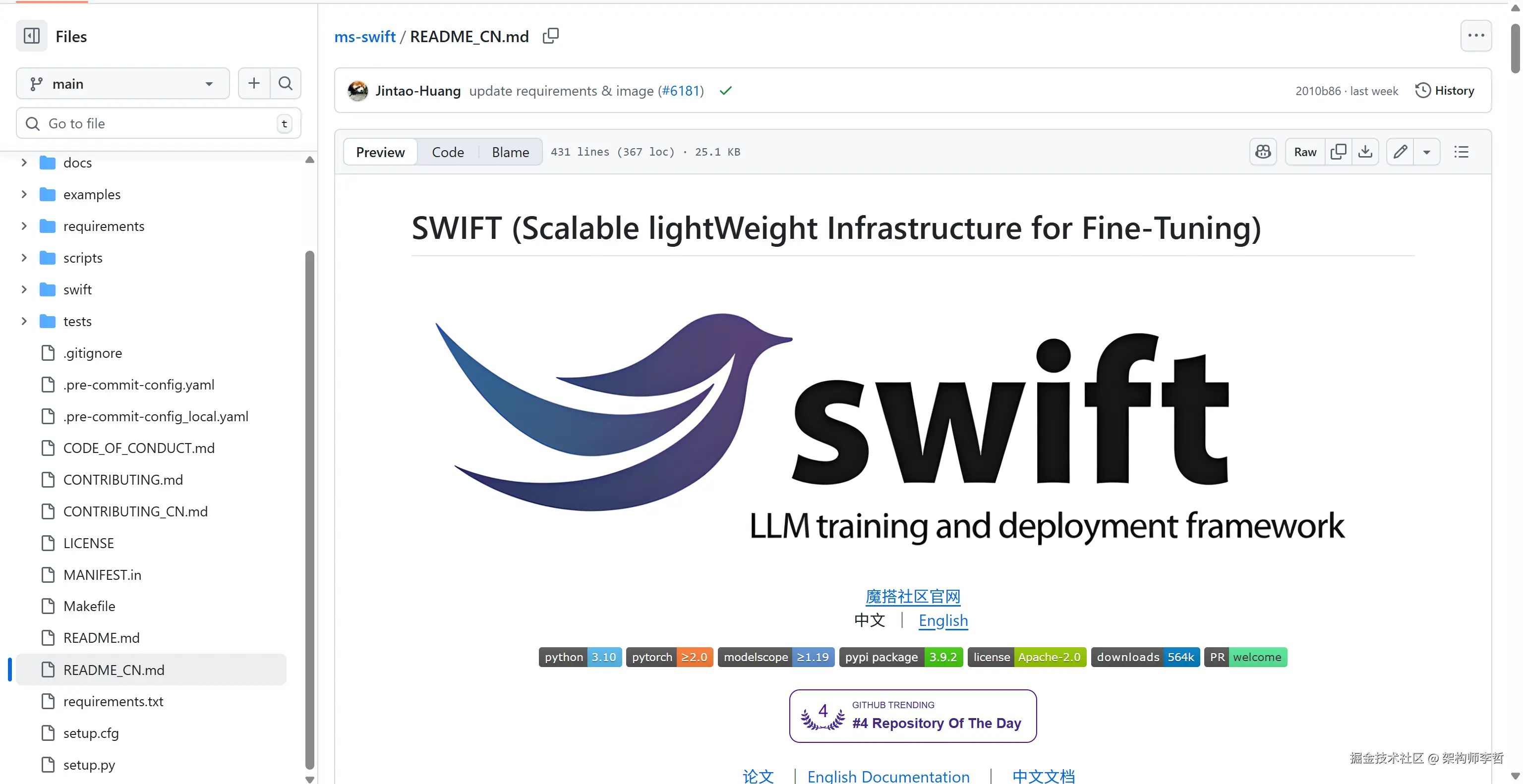 MS-SWIFT(github.com/modelscope/…)是阿里巴巴旗下魔搭社区推出的高效轻量级大模型微调框架,专门针对大模型适配任务进行深度优化。该框架通过以下核心技术展现其核心价值: