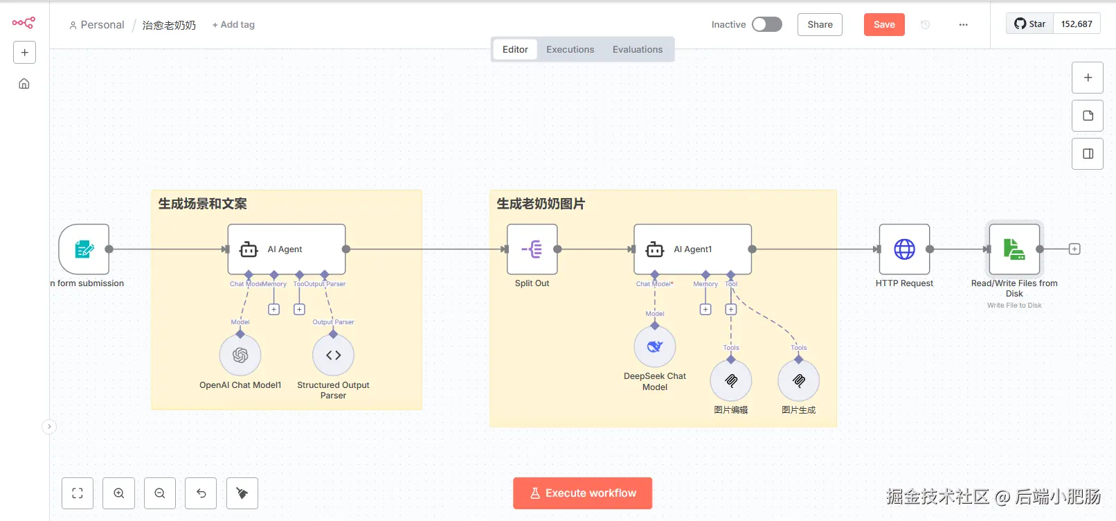 最近社群里学习n8n的氛围高涨,大家都跟着我的教程都在有条不紊地学习。最近有群友问能不能用n8n来实现爆款图文和漫画系列,我的回答当然是可以,甚至n8n比coze还要简单很多,今天就带大家基于n8n来一键生成热度一直很高的治愈老奶奶图文到你本地的磁盘,可以实现一鱼多吃,发布到公众号,小红书,抖音等平台。