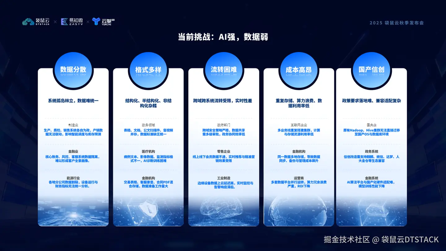 这些挑战使得企业的数据潜力被层层封印,AI 模型“吃不饱、吃不好”,难以发挥最大价值。