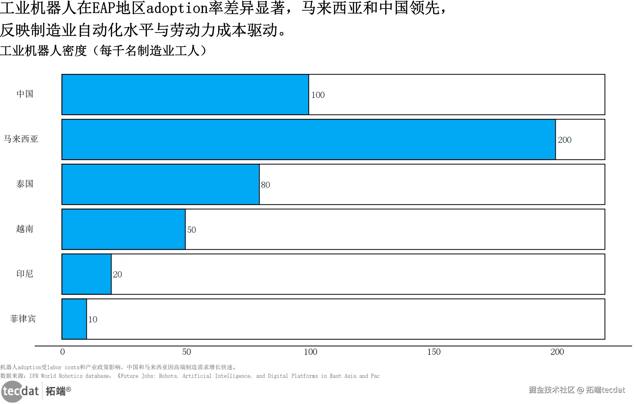 下图清晰展示了EAP地区主要国家的工业机器人密度,每个数据背后都是当地制造业的转型故事: