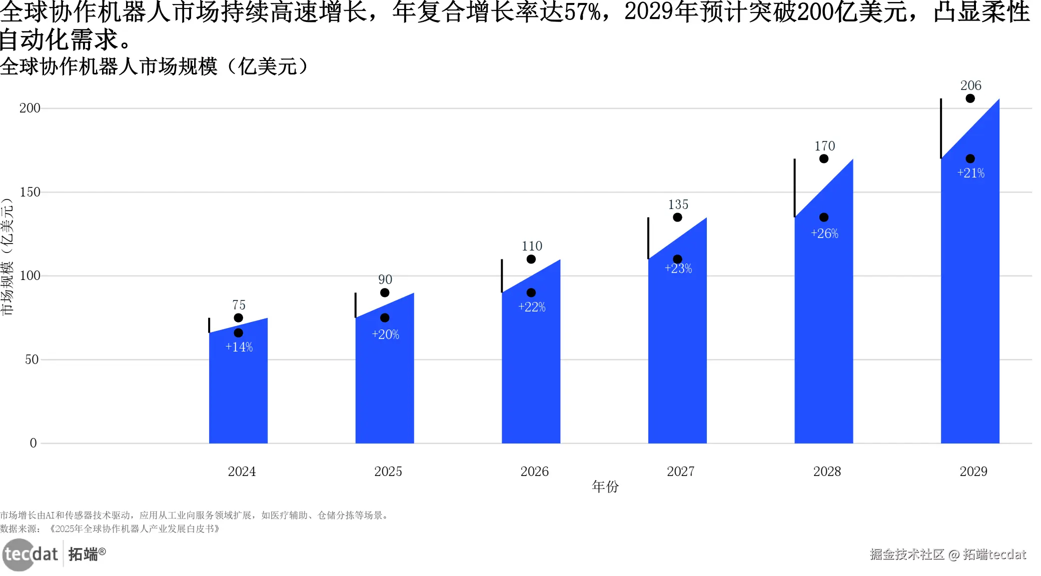 3秒解读:协作机器人6年增长超3倍,2027年(135亿美元)是规模化落地关键节点。