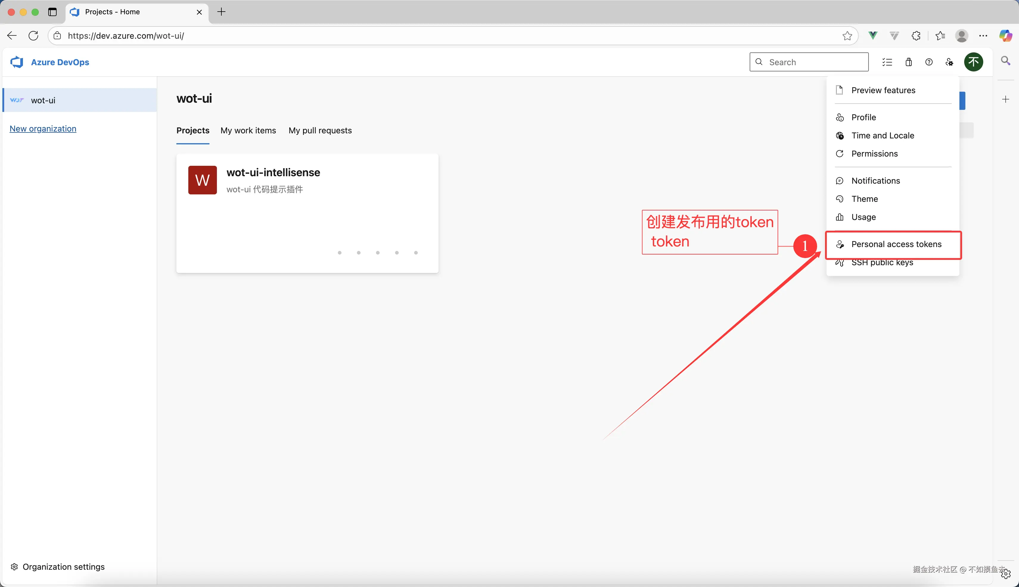 创建 VScode 插件发布的 Token