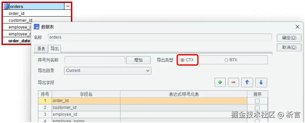 导出 SPL 代码 4:把数据转储成列存组表 CTX。