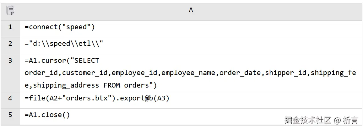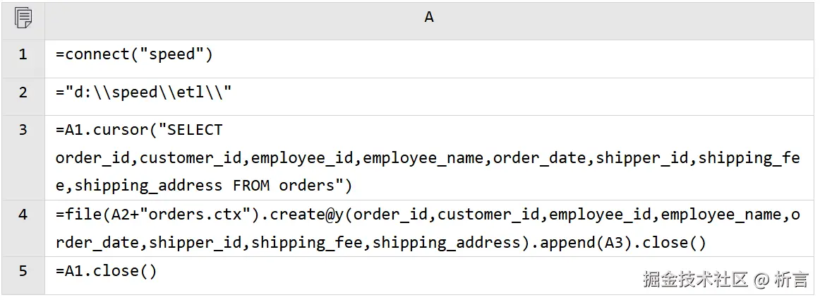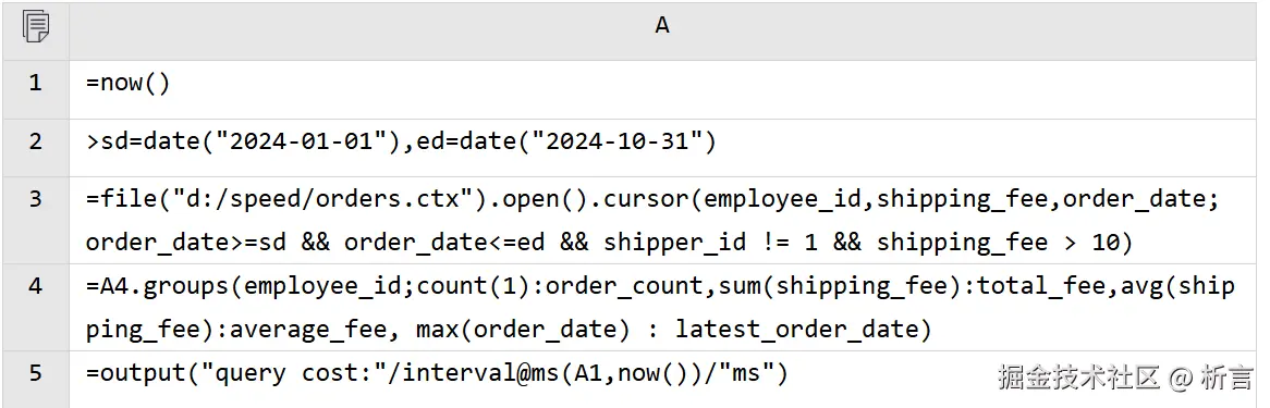 A3 中的游标取数时,先读出 orders.ctx 的 order_date,shipper_id,shipper_fee 字段用于计算条件,如果条件不成立就放弃读取其他字段,如 employee_id。条件成立才继续读出其它需要的字段并创建这条记录。