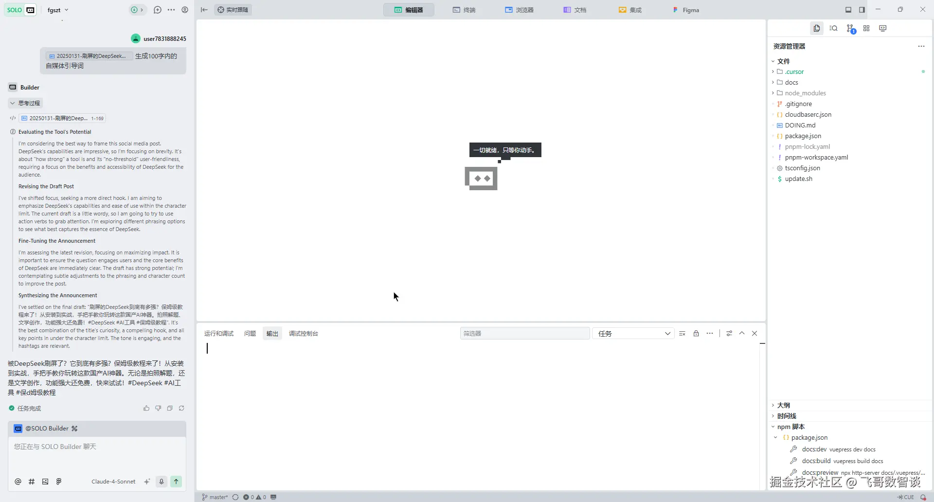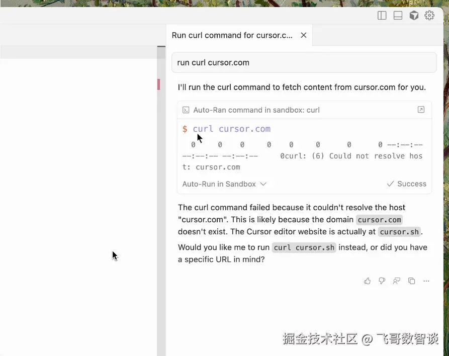 - 终端沙箱:可以在 Chat 中执行终端命令,这个对于整个开发的连贯性来说非常利好。