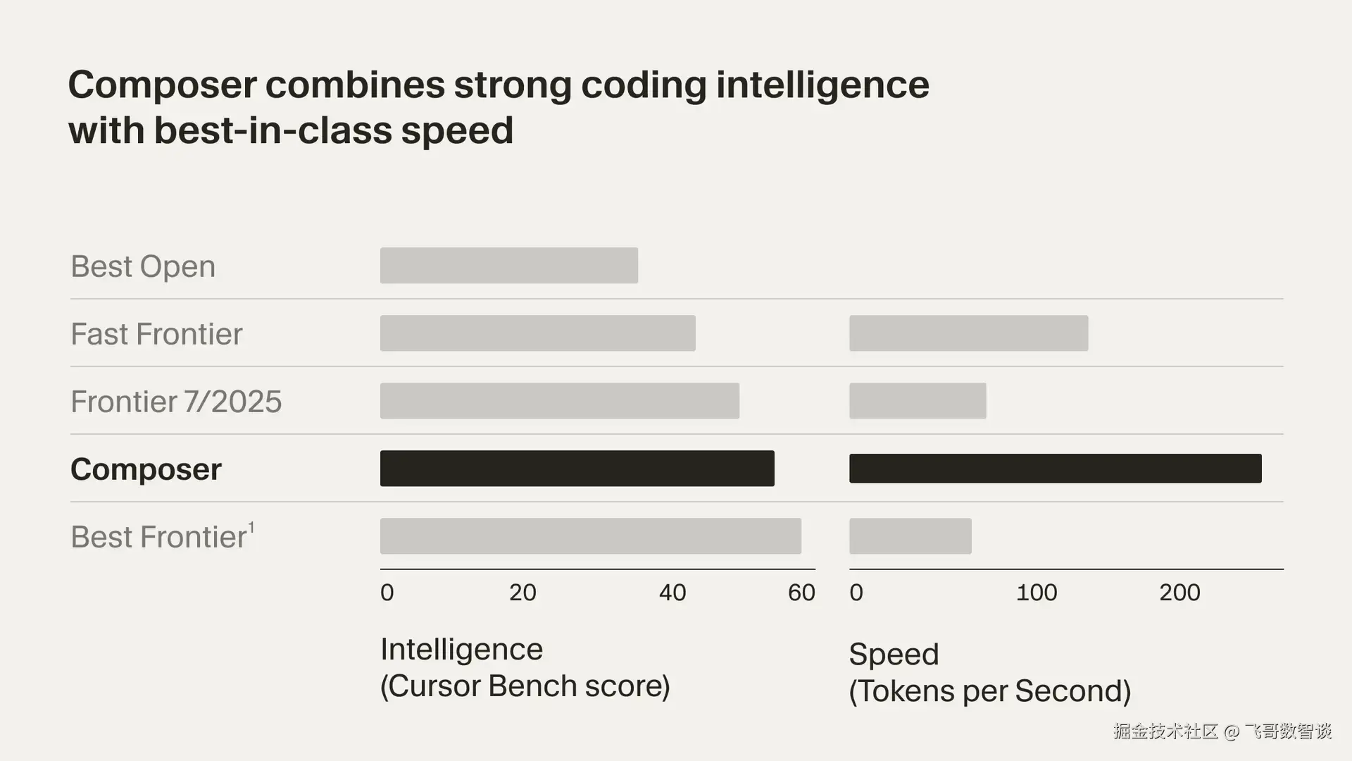 - Best Frontier:包含 GPT-5 和 Sonnet 4.5,二者均优于 Composer。