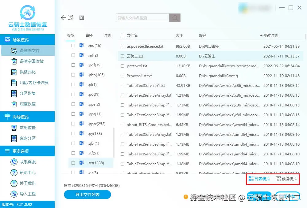 筛选预览:扫描完成后,软件会自动列出扫描结果,可通过文件类型、大小等筛选,接着双击或预览模式可预览。