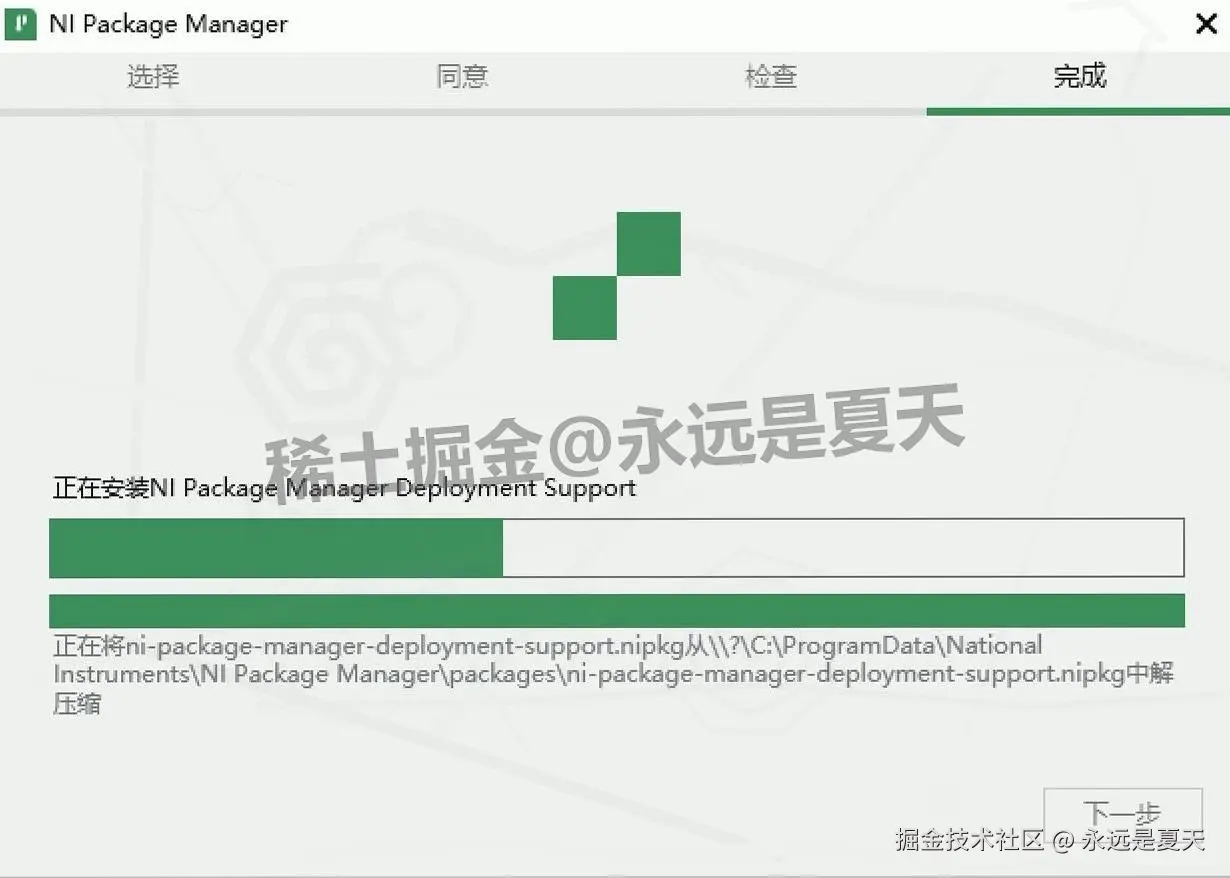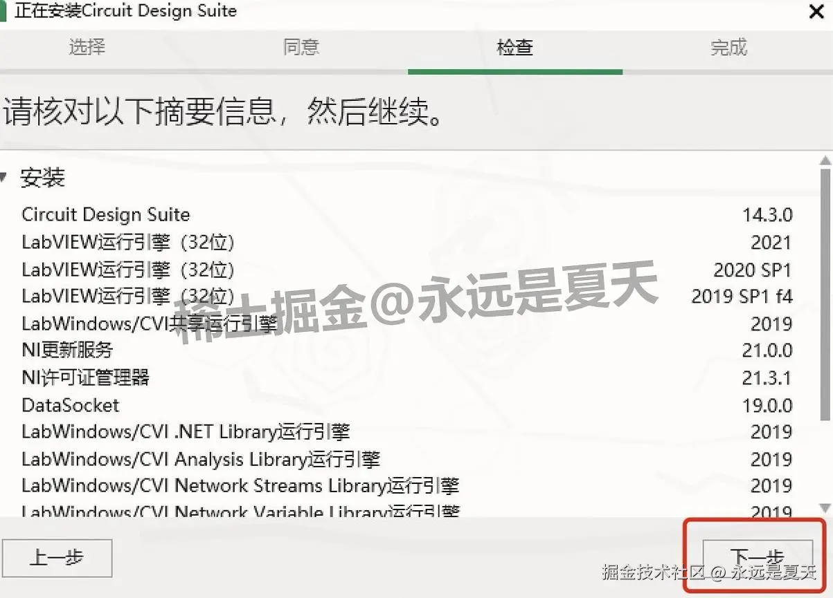 再点 “下一步”,进度条开始动,说明 Multisim 14.3 主程序开始装了。