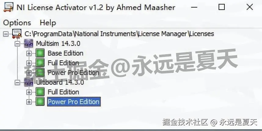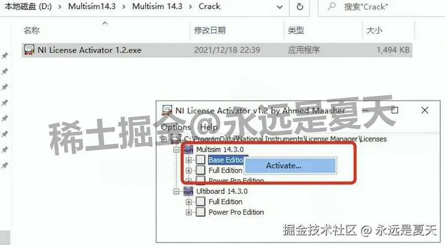 检查 Multisim 14.3 的 License 程序是不是以管理员身份运行的,或者激活时有没有点对【Base Editor】,重新激活一次。