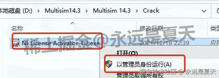 在【Crack】里找到 License 程序(一般叫 “NI License Activator”),右键 “以管理员身份运行”。