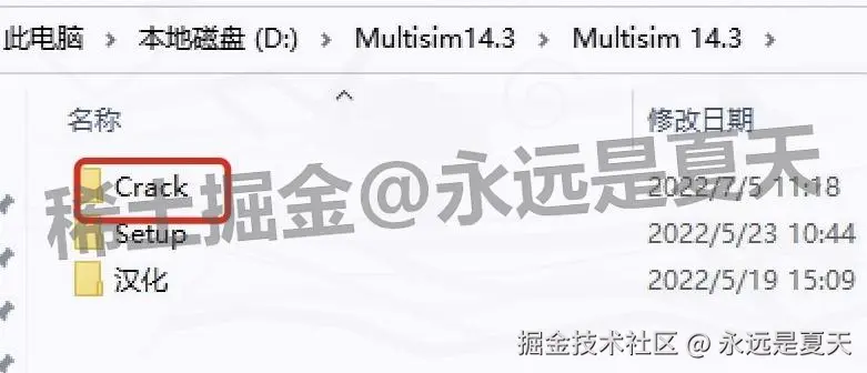 回到最开始解压的 Multisim 14.3 安装包文件夹,找到【Crack】文件夹进去。