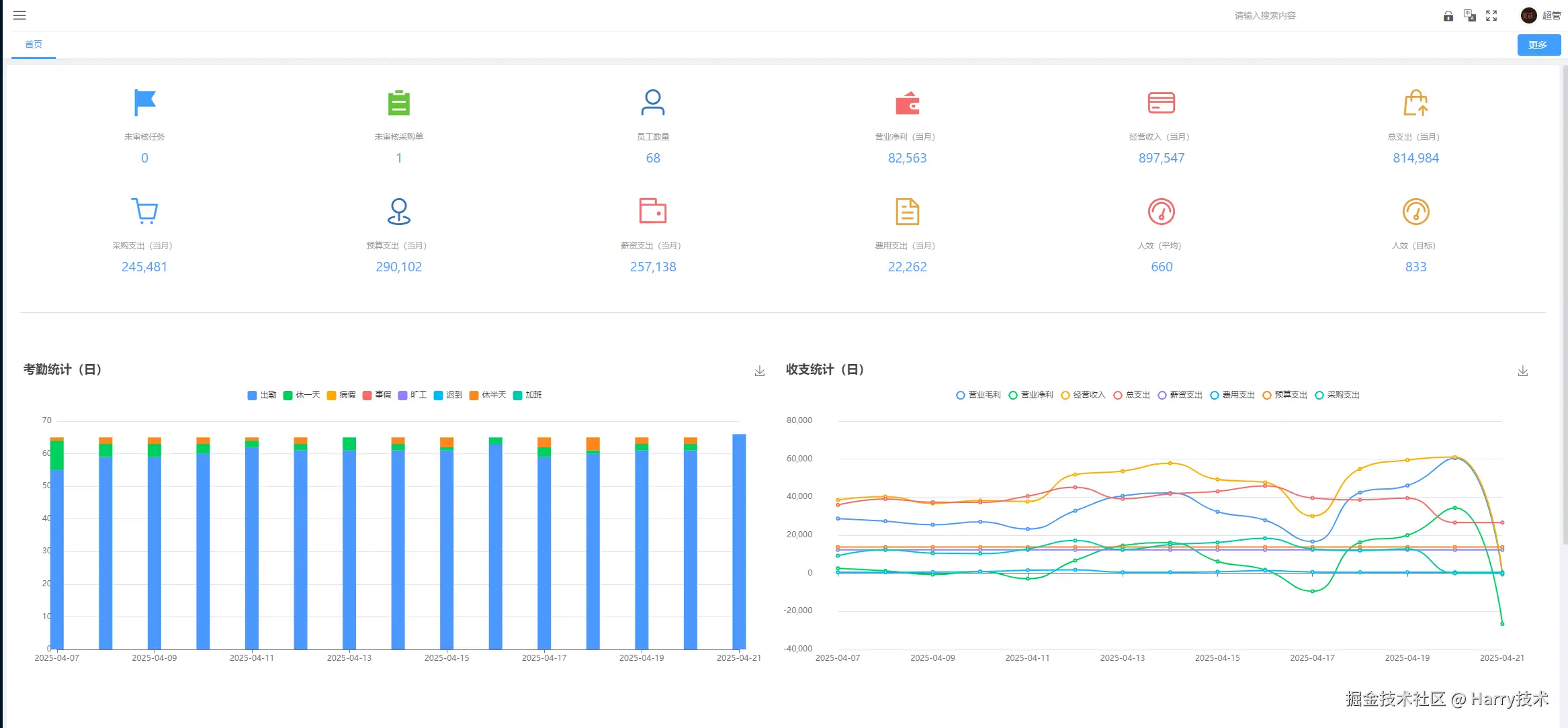 动态数据 看板:收支流水实时更新至可视化看板。